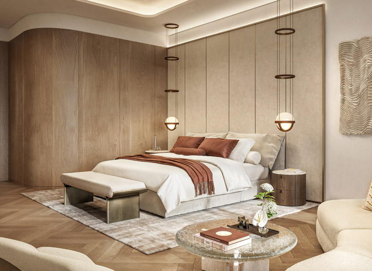 Die ikonische Architektur von Zaha Hadid Architects prägt das Erscheinungsbild von The Alba mit fließenden Linien, organischen Formen und lichtdurchfluteten Räumen. Großzügige Residenzen, Resort Residences und exklusive Super-Penthouses bieten ein Höchstmaß an Privatsphäre, Ruhe und Weitblick – mit spektakulären Aussichten auf das Meer, die Palm Jumeirah und die Skyline Dubais.