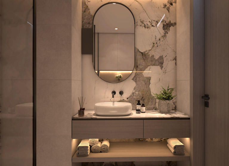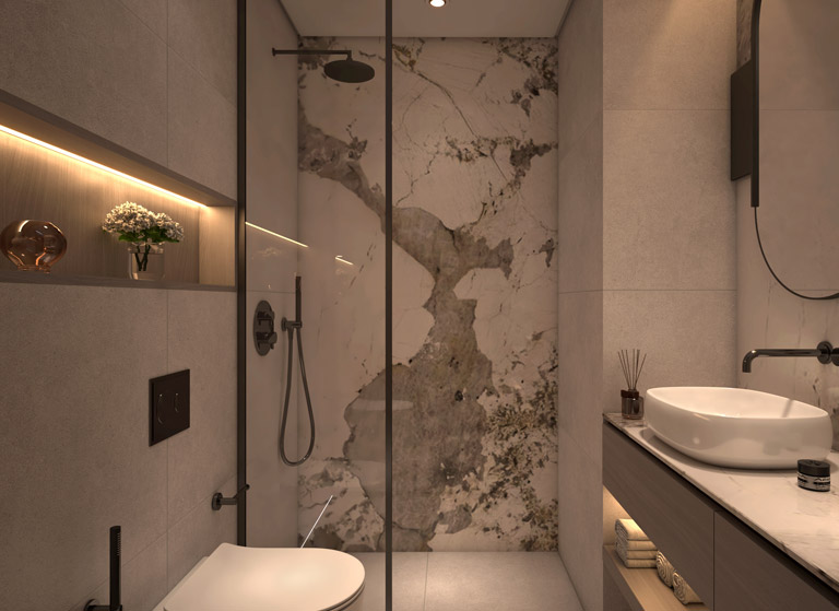 – Studios, 1-, 2- und 3-Schlafzimmer-Apartments mit hochwertigen Materialien und luxuriöser Ausstattung.